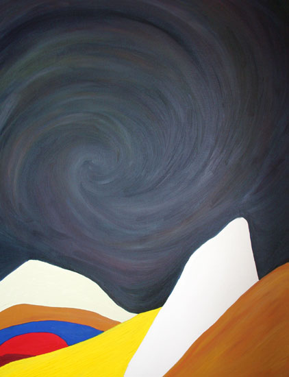 これは以前にはなかったコミュニケーションツール、一つの固有なランゲージが創造されることを意味する。彼の作品という言語には、単語や文法、美しい文体のための例文もない。飾りのない線と面から成る表現は、山になって空になって森になって砂漠になって私たちの心を掻き回す。数多くのストロークと多様なカラーは、数えきれない意味で増殖し、広がりながら深く掘り下げる単語であり、また身振りであり、キスでもある。 大丈夫だ、大丈夫だと撫でてくれるようで、一緒に遊ぼうと手ぶりするようで、離れられなくなる。不可解で巨大な誘惑だ。